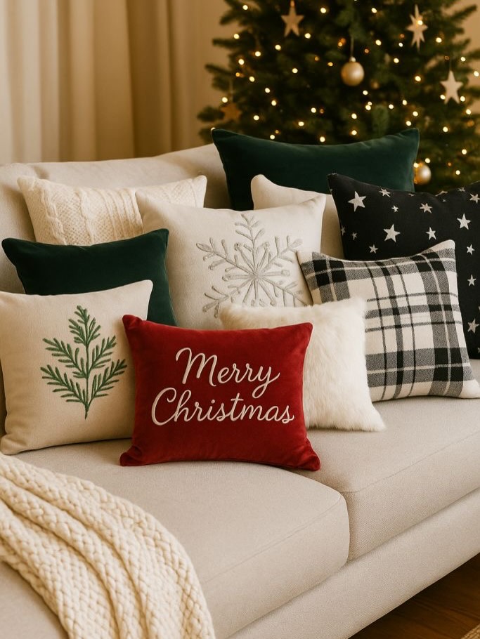 Textiel is onmisbaar in een warm kerstinterieur. Kussens in rijke tinten, prints of zachte stoffen geven meteen sfeer. Een plaid over de bank of stoel maakt een ruimte direct knus en uitnodigend. Het zijn vaak deze lagen die een interieur echt laten leven.