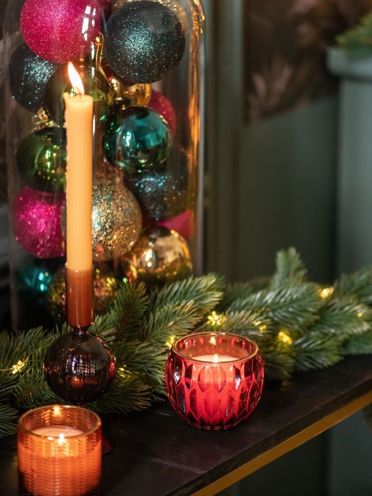 Licht bepaalt de sfeer. Sfeerverlichting, lichtsnoeren en kaarsen in verschillende hoogtes zorgen voor die herkenbare kerstgloed. Kies altijd voor warm licht; dat maakt een ruimte zachter en intiemer. Met een rustig kerstnummer op de achtergrond komt deze sfeer nóg beter tot zijn recht.